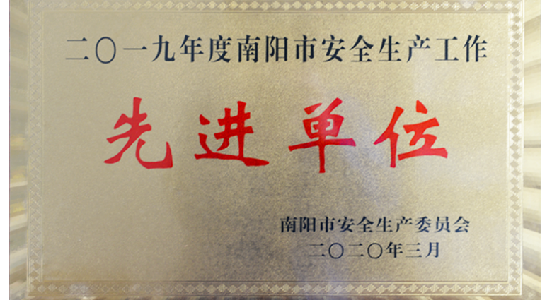 西排公司被授予“2019年度南阳市安全生产工作先进单位”荣誉称号