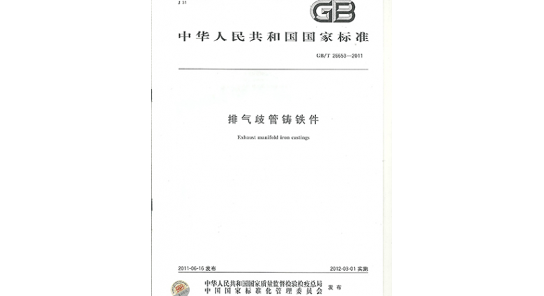 主持制定《排气歧管铸铁件》国家标准