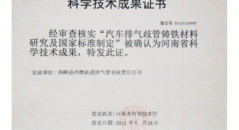 汽车排气歧管铸铁材料研究及国家标准制定