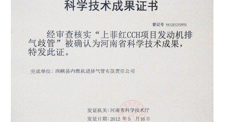 上菲红CCH项目发动机排气歧管